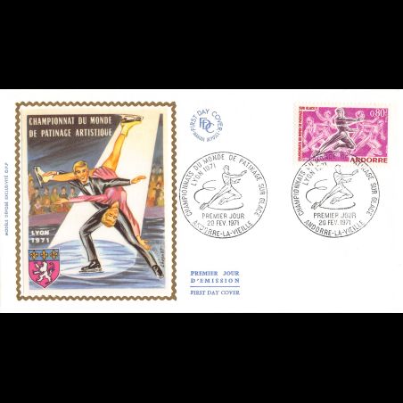 FDC - Enveloppe premier jour d'Andorre Français émise sur l'Année 1971. Nous vous proposons ces produits en différentes finitions (illustration soie ou pas, enveloppes petits et grands formats). En fonction des périodes, ces enveloppes ont été émises par différents éditeurs (Farcigny, CEF, Numismatique Française, Thiaude...) que nous vous proposons dans la mesure du possible.