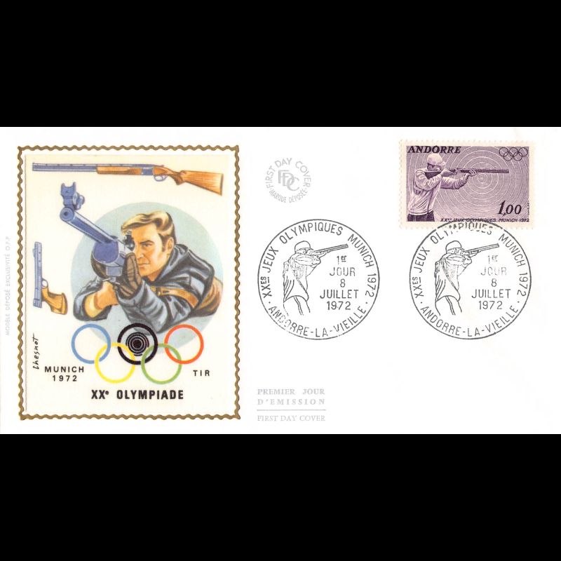 FDC - Jeux Olympiques de Munich - Le tir, oblit PJ 8/7/72