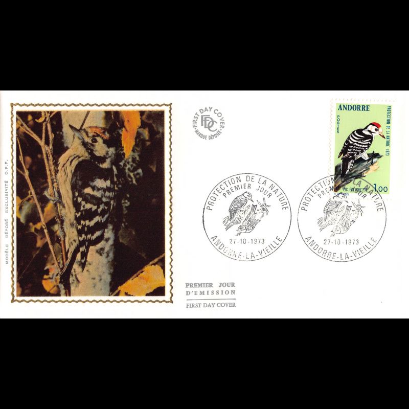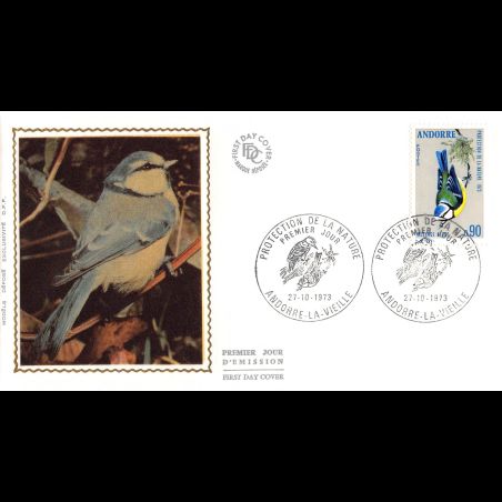 FDC - Enveloppe premier jour d'Andorre Français émise sur l'Année 1973. Nous vous proposons ces produits en différentes finitions (illustration soie ou pas, enveloppes petits et grands formats). En fonction des périodes, ces enveloppes ont été émises par différents éditeurs (Farcigny, CEF, Numismatique Française, Thiaude...) que nous vous proposons dans la mesure du possible.