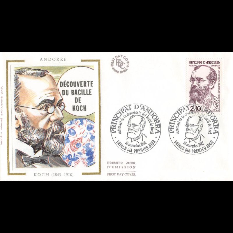 FDC - Enveloppe premier jour d'Andorre Français émise sur l'Année 1982. Nous vous proposons ces produits en différentes finitions (illustration soie ou pas, enveloppes petits et grands formats). En fonction des périodes, ces enveloppes ont été émises par différents éditeurs (Farcigny, CEF, Numismatique Française, Thiaude...) que nous vous proposons dans la mesure du possible.