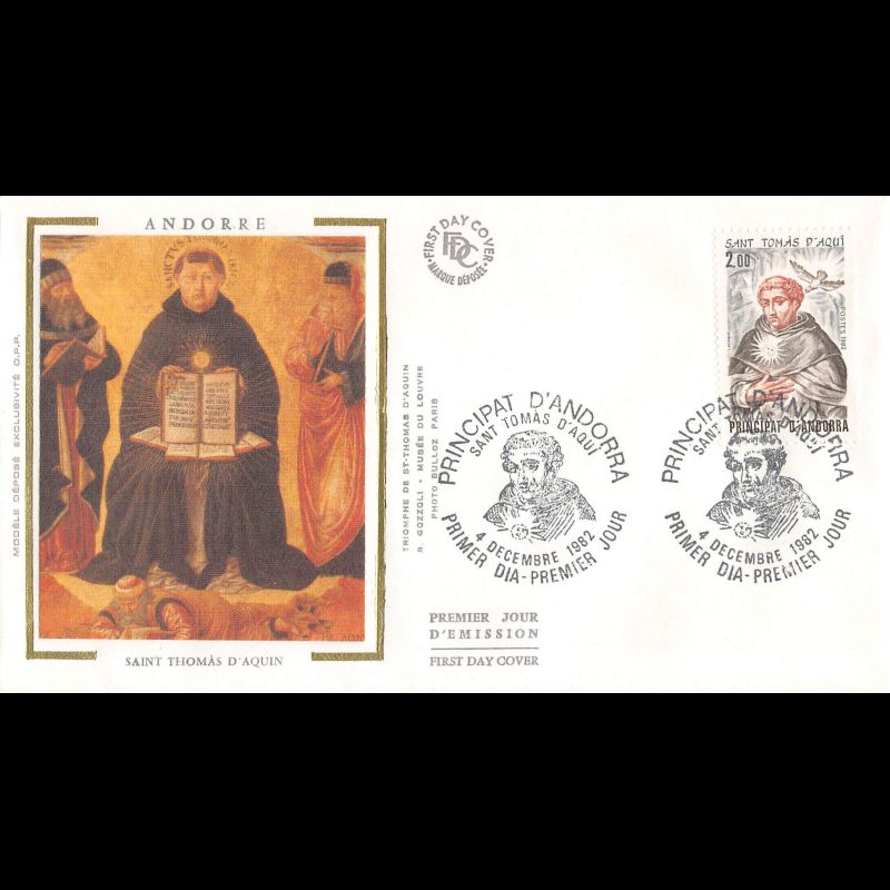 FDC - Enveloppe premier jour d'Andorre Français émise sur l'Année 1982. Nous vous proposons ces produits en différentes finitions (illustration soie ou pas, enveloppes petits et grands formats). En fonction des périodes, ces enveloppes ont été émises par différents éditeurs (Farcigny, CEF, Numismatique Française, Thiaude...) que nous vous proposons dans la mesure du possible.