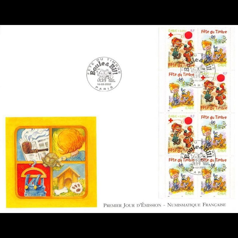 FDC GF LNF - Carnet fête du timbre 2002, Boule et Bill, 16/3/02 Paris