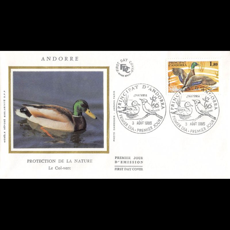 FDC - Enveloppe premier jour d'Andorre Français émise sur l'Année 1985. Nous vous proposons ces produits en différentes finitions (illustration soie ou pas, enveloppes petits et grands formats). En fonction des périodes, ces enveloppes ont été émises par différents éditeurs (Farcigny, CEF, Numismatique Française, Thiaude...) que nous vous proposons dans la mesure du possible.