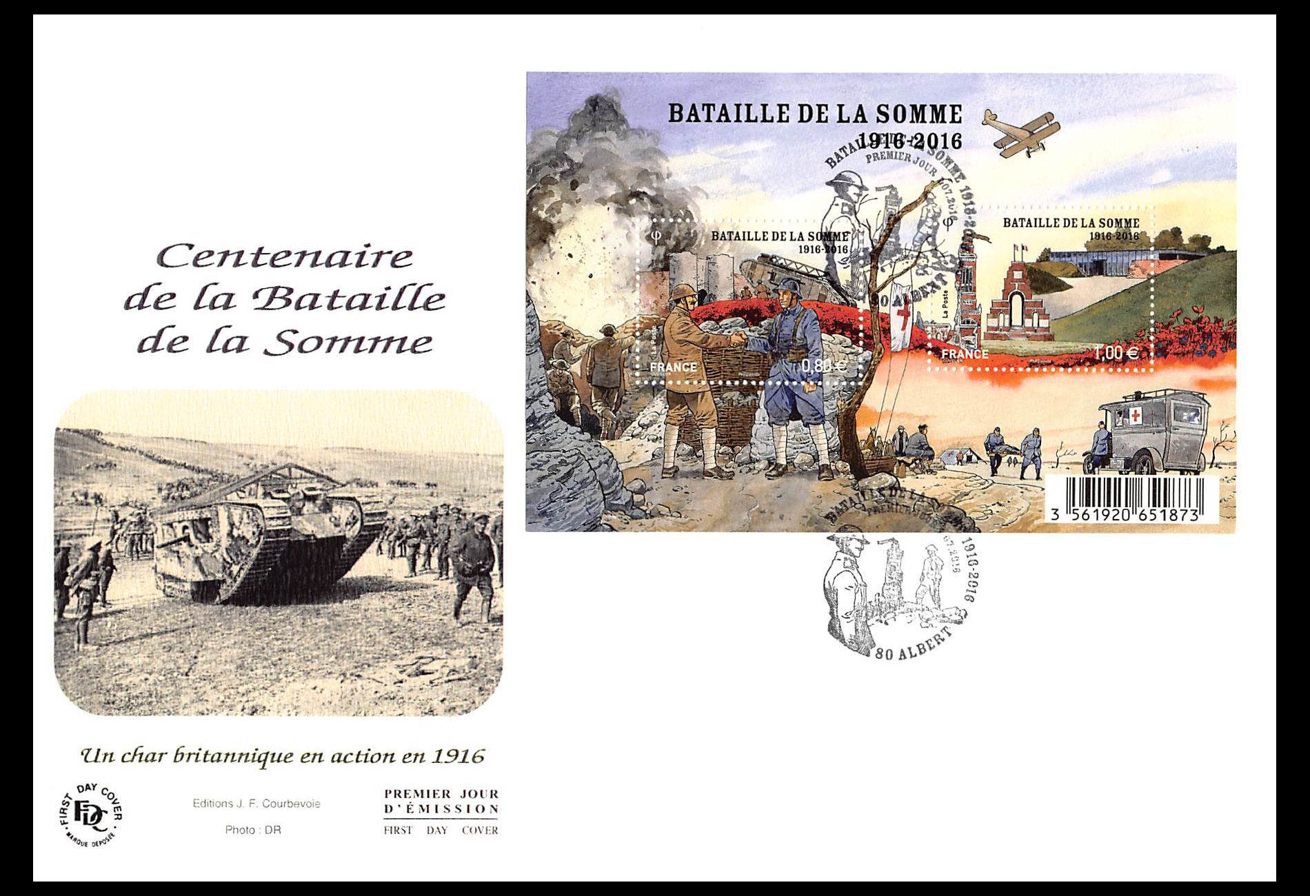 FDC GF JF - Bloc centenaire bataille de la somme, oblit 1/7/2016 Albert