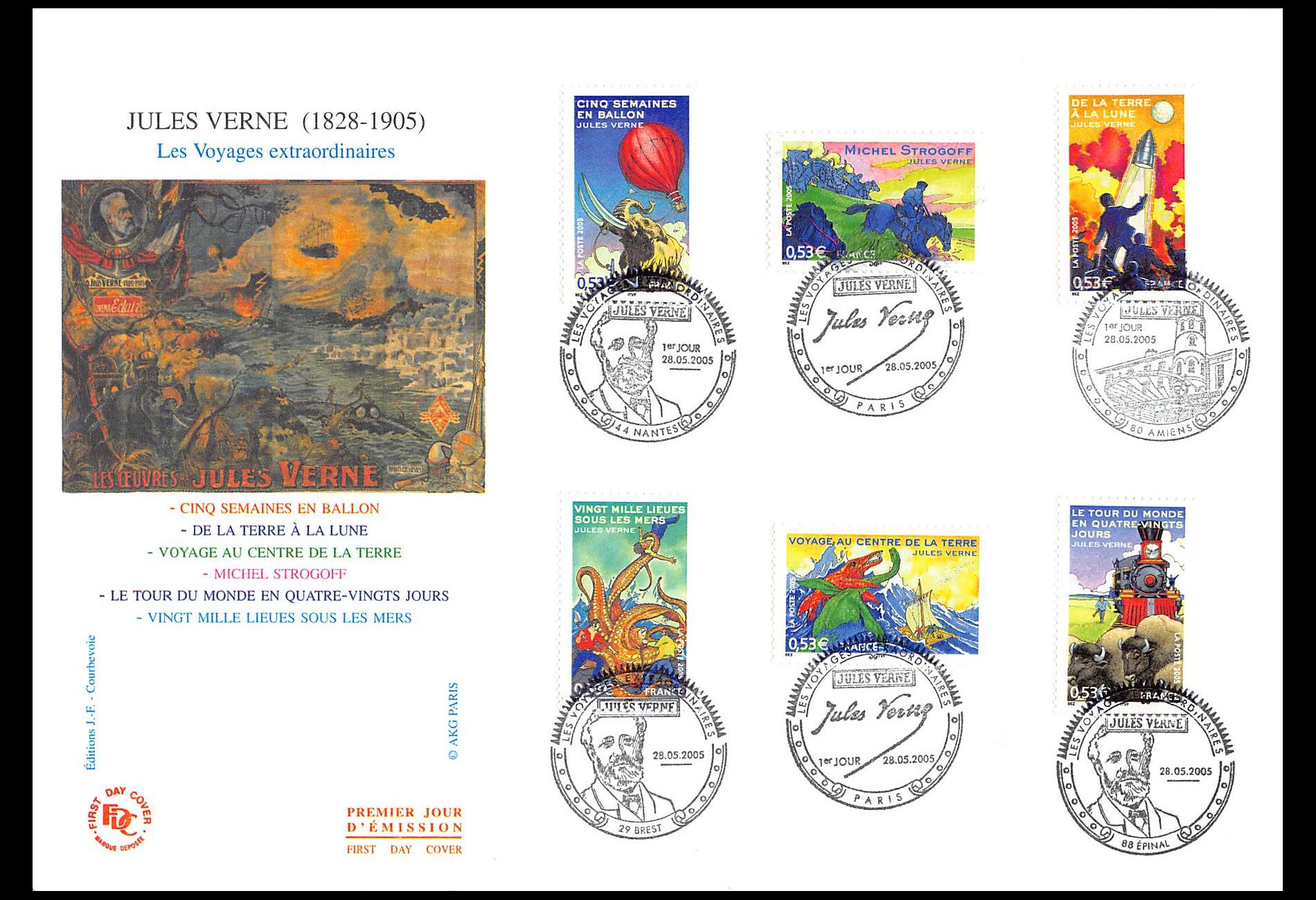 FDC GF JF - Série de 6 timbres Jules Verne - oblit diverses 28/05/2005