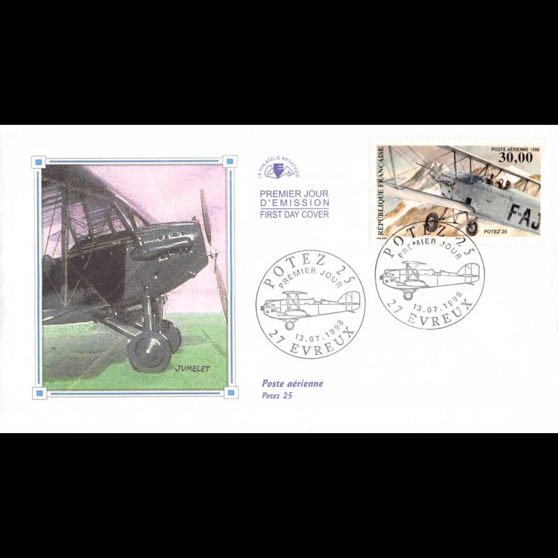 CEF - Poste Aérienne. Potez 25 - 13/7/1998 Evreux - First Day Cover - Enveloppe premier jour de France.
