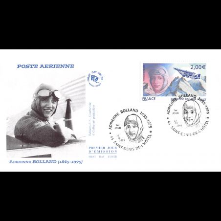 FDC JF - Poste aérienne - Adrienne Bolland, oblit 22/10/05 St Denis de l'hôtel - First Day Cover - Enveloppe premier jour de France.