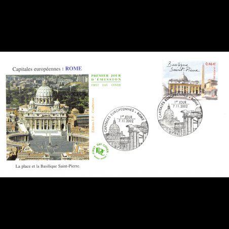 FDC JF - Basilique Saint Pierre à Rome - 7/11/2002 Paris - First Day Cover - Enveloppe premier jour de France. Edition Jean Farcigny Dimensions de l'enveloppe : 150 x 90 mm