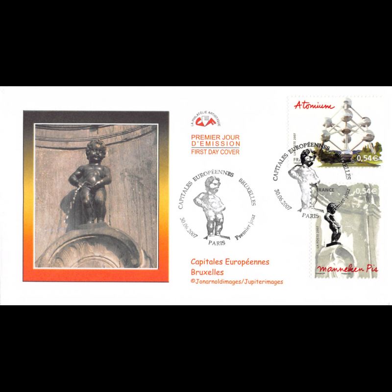 CEF - Capitales européennes - Bruxelles (env 1 sur 2) - oblit Paris 30/6/2007 - First Day Cover - Enveloppe premier jour de France.