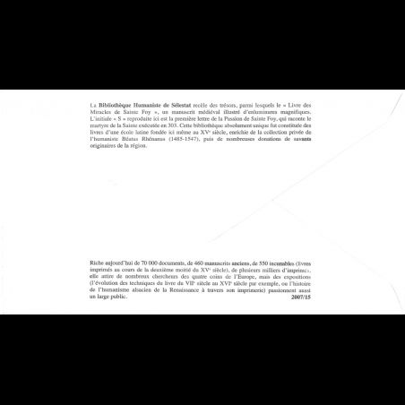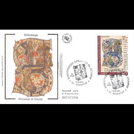 FDC soie - Bibliothèque humaniste de Sélestat - oblit 10/2/2007 - First Day Cover - Enveloppe premier jour de France avec illustration soie.
