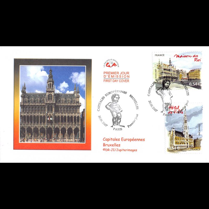 CEF - Capitales européennes - Bruxelles (env 1 sur 2) - oblit Paris 30/6/2007 - First Day Cover - Enveloppe premier jour de France.