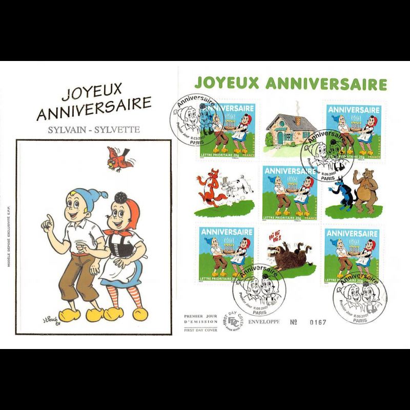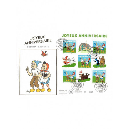 FDC GF soie - Joyeux anniversaire Sylvain et Sylvette, oblit 8/9/2007 Paris - First Day Cover - Enveloppe premier jour Grand Format de France, illustration soie.