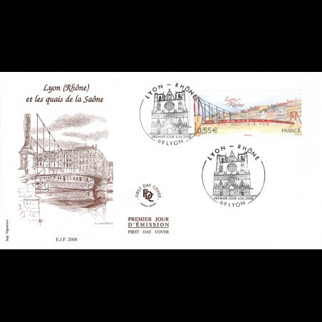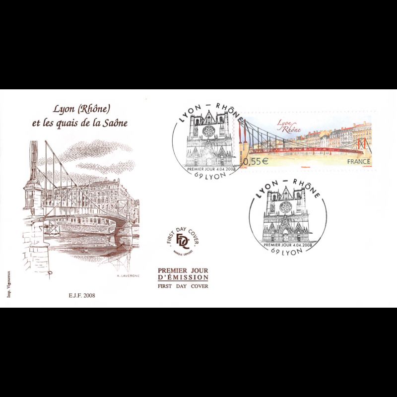 FDC - Lyon - La passerelle St Georges - oblit Lyon 4/4/08 (gravée taille douce)