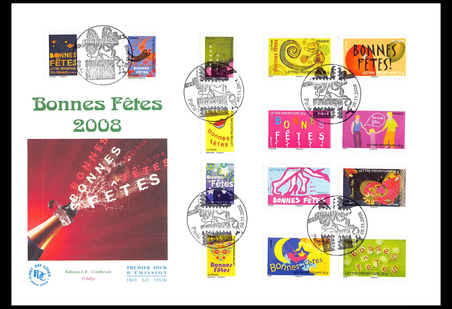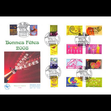 FDC GF JF - Carnet adhésif bonnes fêtes 2008 - oblit Paris 8/11/2008