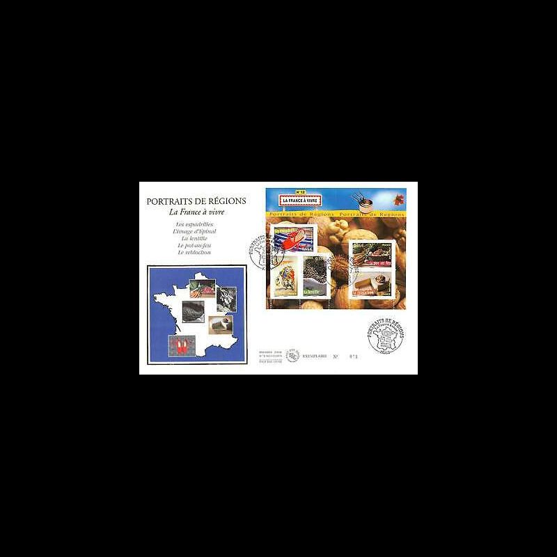 FDC GF soie - Bloc France à vivre n° 12, oblit Paris 6/9/08, les 2 enveloppes - First Day Cover - Enveloppe premier jour Grand Format de France, illustration soie.