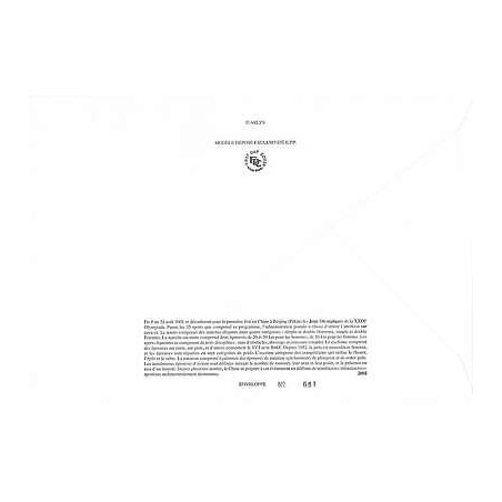 FDC GF soie - Bloc JO Beijing 2008, oblit Paris 16/6/08 - First Day Cover - Enveloppe premier jour Grand Format de France, illustration soie.