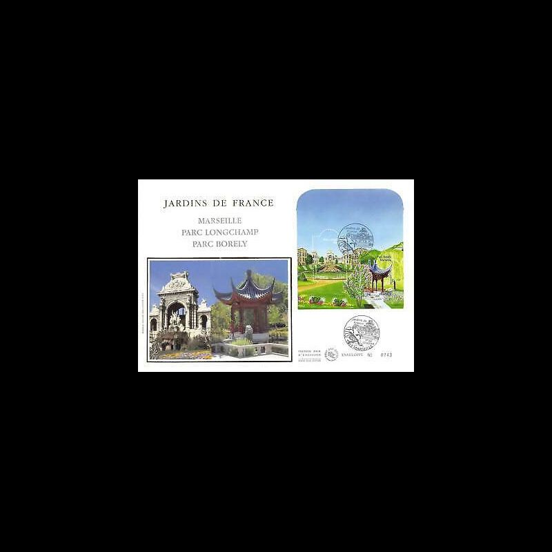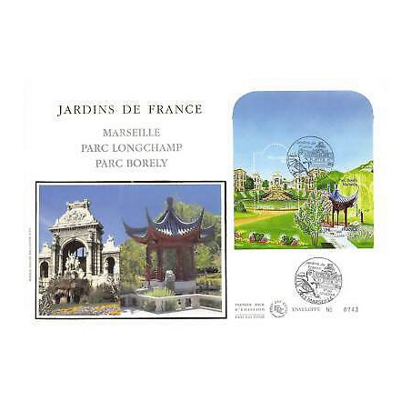 FDC GF soie - Bloc jardins de Marseille 2008, oblit Marseille 12/4/08 - First Day Cover - Enveloppe premier jour Grand Format de France, illustration soie.