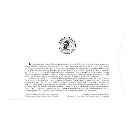FDC LNF - Sommet de Paris pour la Méditerranée - oblit Paris 13/7/08 - First Day Cover - Enveloppe premier jour de France.