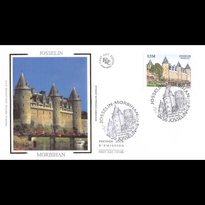 FDC soie - Josselin - Le château - oblit Josselin 20/9/08 - First Day Cover - Enveloppe premier jour de France avec illustration soie.