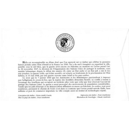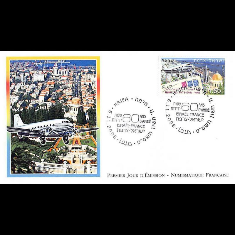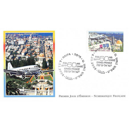 FDC LNF - Emission commune France Israël (1936) - oblit Haïfa 6/11/08 - First Day Cover - Enveloppe premier jour de France. Edition La Numismatique Française Dimensions de l'enveloppe : 175 x 100 mm