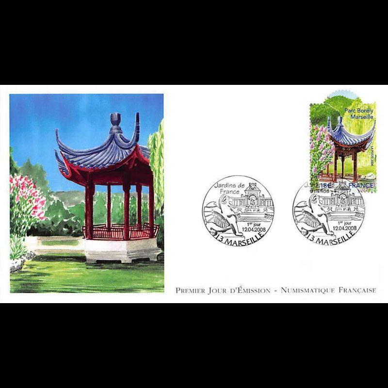 FDC LNF - Jardins de France - Les jardins de Marseille (4174) - oblit 12/4/08 - First Day Cover - Enveloppe premier jour de France.