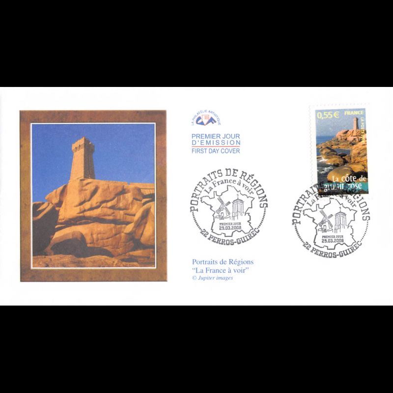 CEF - Portraits de régions - La côte de granit rose - Perros-Guirec 29/3/08 - First Day Cover - Enveloppe premier jour de France.