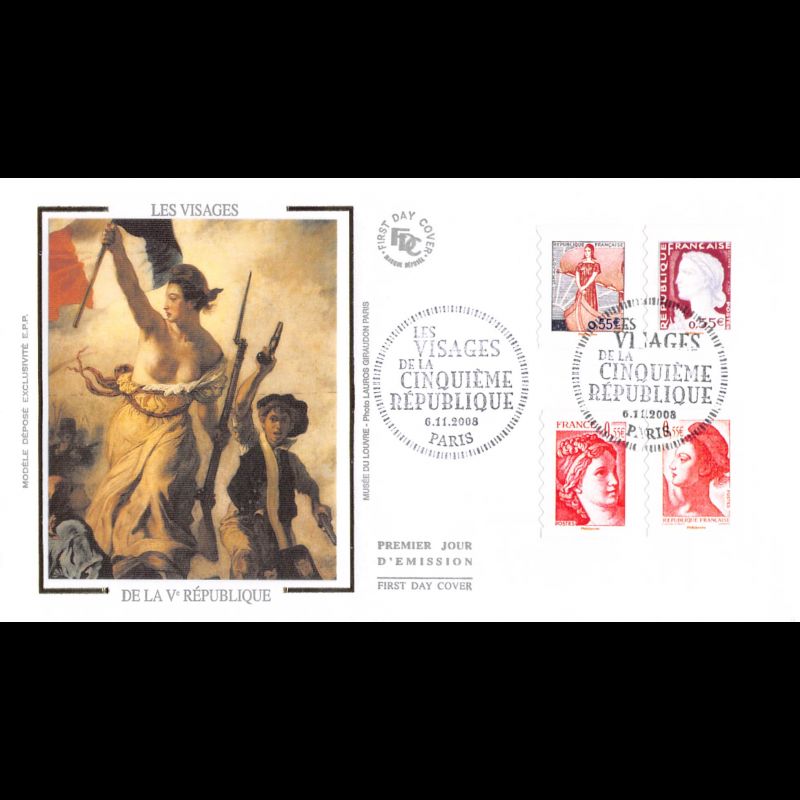 FDC soie - Les visages de la Ve République (env 3 sur 3) - oblit Paris 6/11/08 - First Day Cover - Enveloppe premier jour de France avec illustration soie.