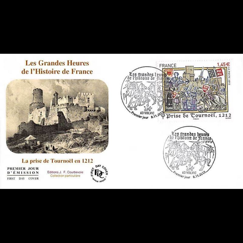 FDC - Histoire de France, la prise de Tournoël en 1212, oblit 8/11/2013 Volvic