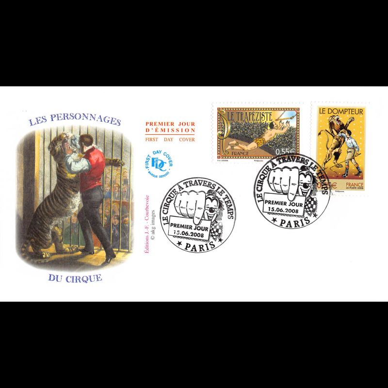 FDC - Cirque à travers le temps - Dompteur, trapéziste - obl Paris 15/6/08