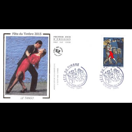 FDC soie - Fête du timbre 2015. Le tango - oblit 10/10/15 Paris - First Day Cover - Enveloppe premier jour de France.