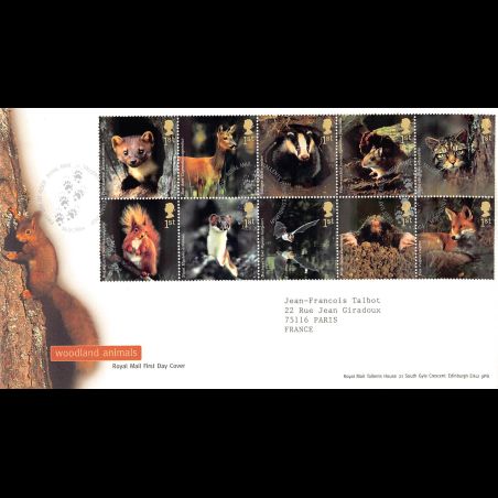 FDC Royal Mail Faune. Animaux des bois - Série 2578 à 2587