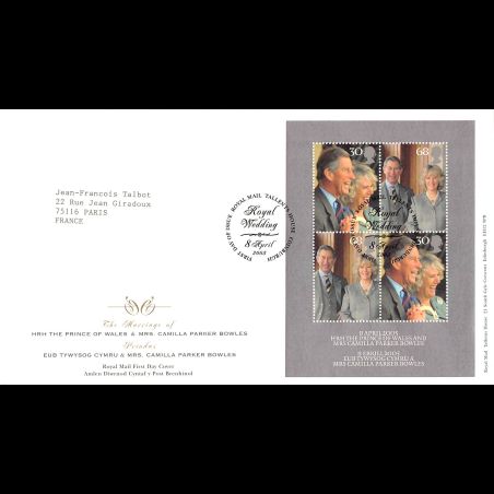 FDC Royal Mail - Bloc n° 30 - Mariage de S.A.R. le Prince Charles avec Camilla