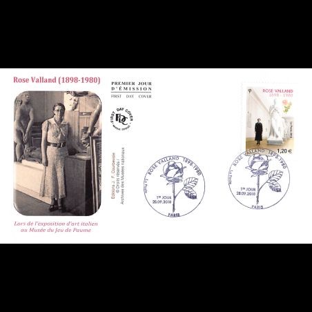 FDC JF - Rose Valland, résistante - 28/9/2018 Paris - First Day Cover - Enveloppe premier jour de France. Edition Jean Farcigny Dimensions de l'enveloppe : 150 x 90 mm