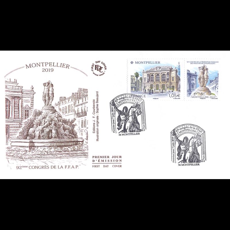 FDC JF - 92e congrès de la FFAP - 7/6/2019 Montpellier - Enveloppe premier jour de France. Edition Jean Farcigny