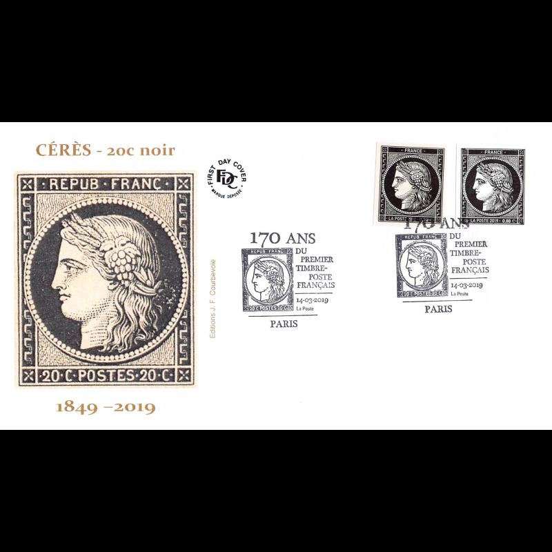 FDC JF - 170 ans du premier timbre Français - 14/3/2019 Paris - Enveloppe premier jour de France. Edition Jean Farcigny