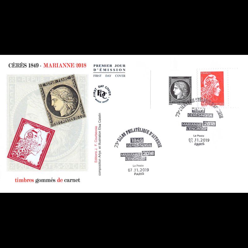 FDC JF - Marianne l'engagée 2018, paire de carnet gommé - 7/11/2019 Paris - Enveloppe premier jour de France. Edition Jean Farcigny
