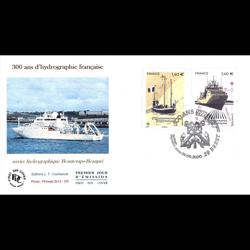 FDC JF - 300 ans service hydrographique - 22/5/2020 Brest - Enveloppe premier jour de France. Edition Jean Farcigny