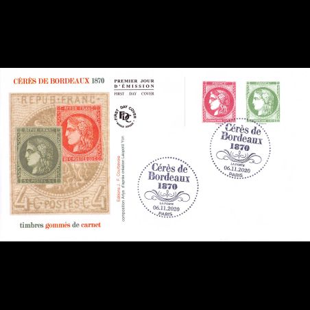 FDC JF - Cérès de Bordeaux. Paire de carnet gommé - 6/11/2020 Paris - Enveloppe premier jour de France. Edition Jean Farcigny