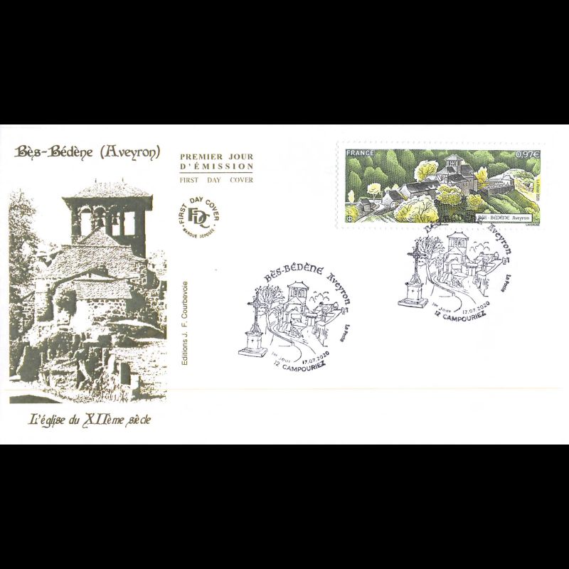 FDC JF - L'église de Bès-Bédère (Aveyron) - 17/7/2020 Campouriez - Enveloppe premier jour de France. Edition Jean Farcigny