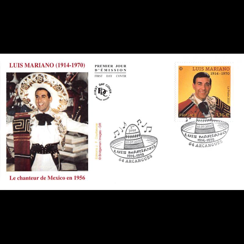 FDC JF - Chanteur Luis Mariano - 10/7/2020 Arcangues - Enveloppe premier jour de France. Edition Jean Farcigny