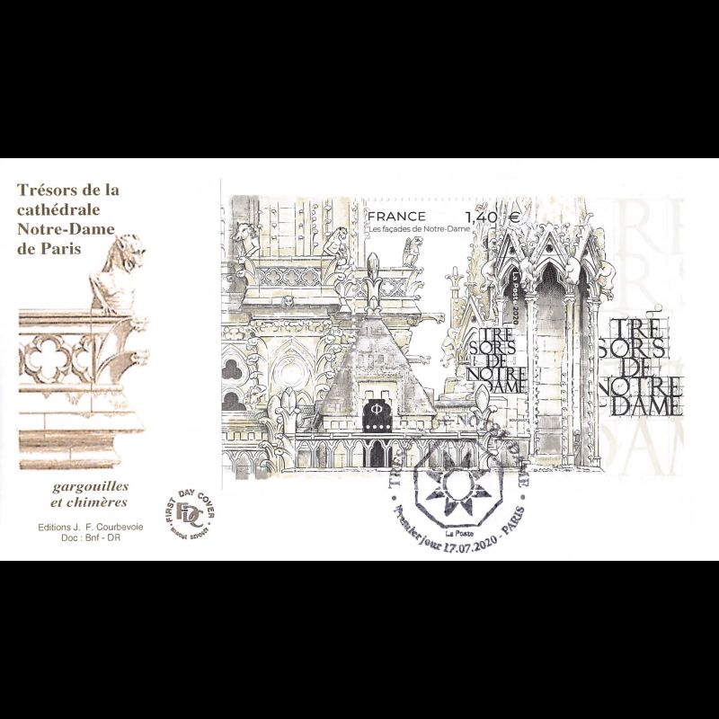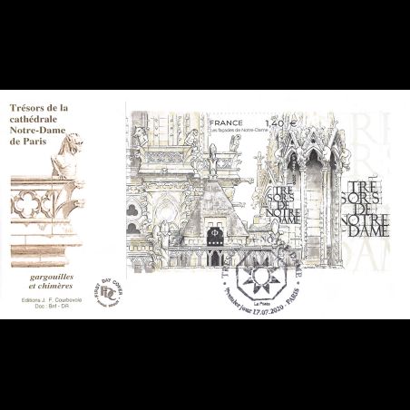 FDC JF - Bloc trésors de Notre Dame - 17/7/2020 Paris - Enveloppe premier jour de France. Edition Jean Farcigny