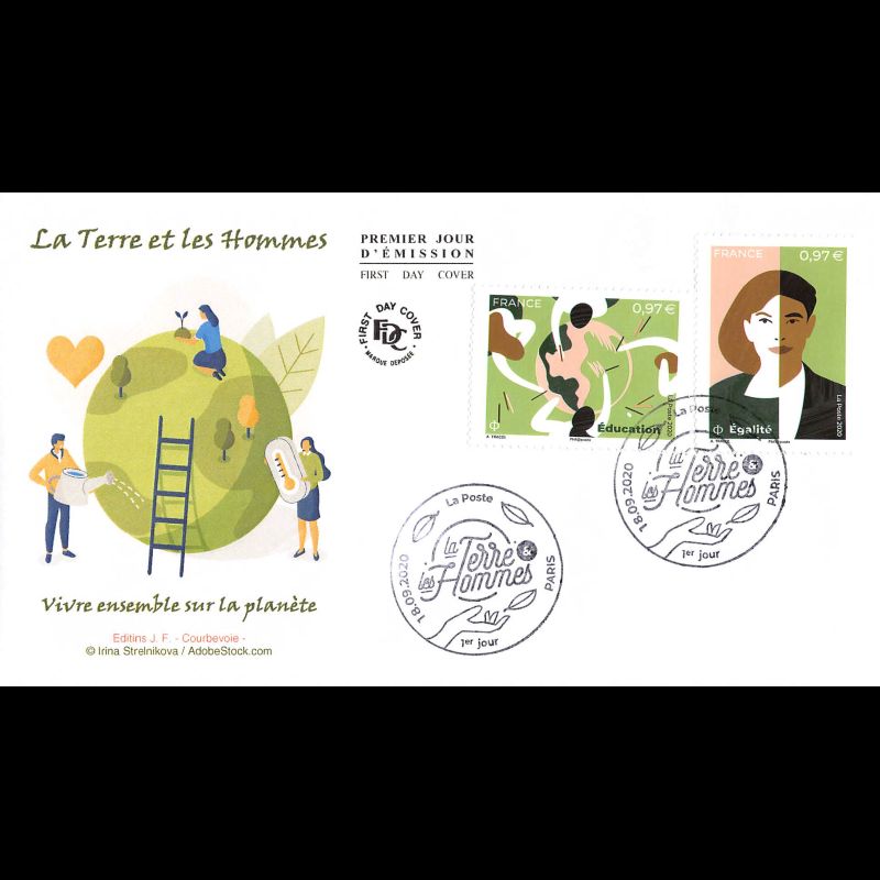 FDC JF - Série la terre et les hommes (2 env) - 18/9/2020 Paris - Enveloppe premier jour de France. Edition Jean Farcigny