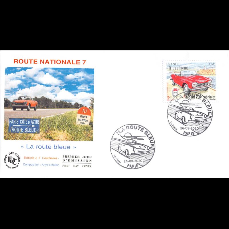 FDC JF - Route nationale 7, la route bleue - 26/9/2020 Paris - Enveloppe premier jour de France. Edition Jean Farcigny