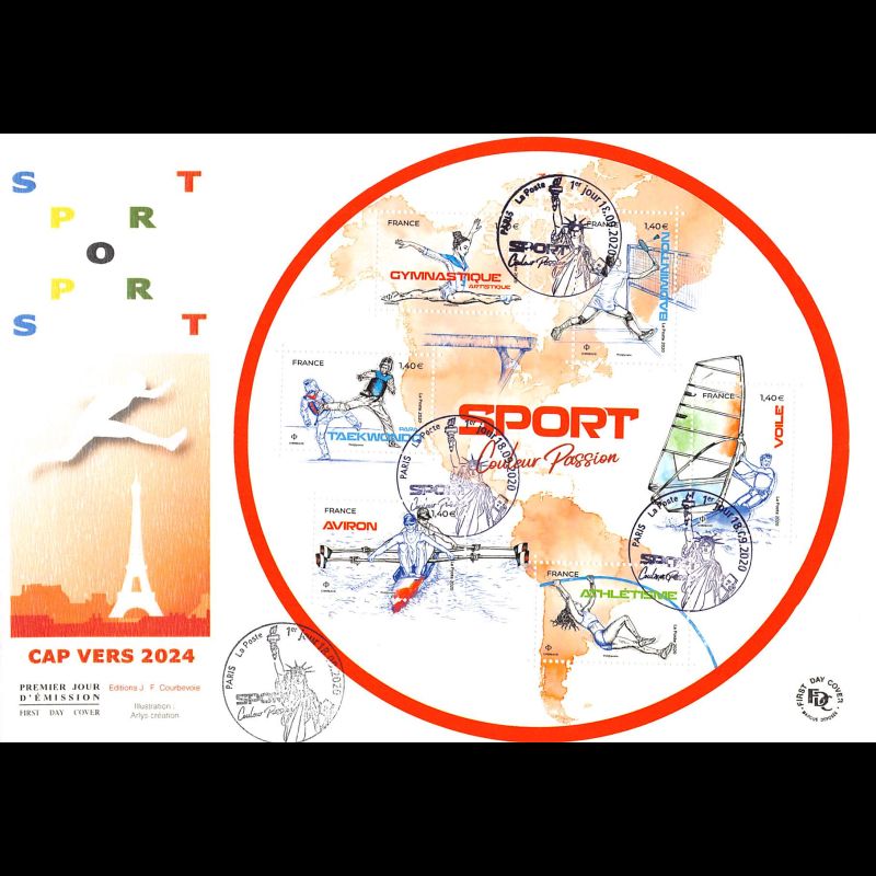 FDC GF JF - Bloc sport, cap vers 2024 - 18/9/2020 Paris - First Day Cover - Enveloppe premier jour Grand Format de France.