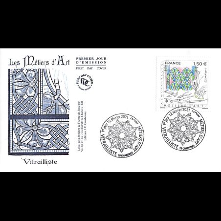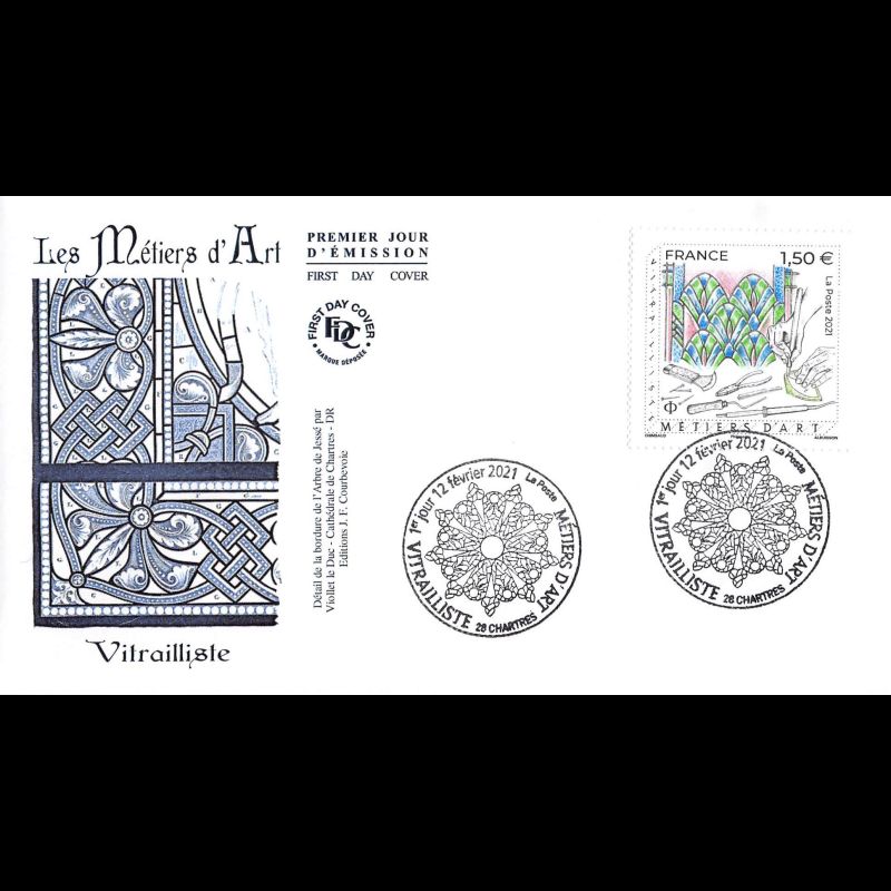 FDC JF - Métiers d'art. Le vitrailliste - 12/2/2021 Chartres - Enveloppe premier jour de France. Edition Jean Farcigny