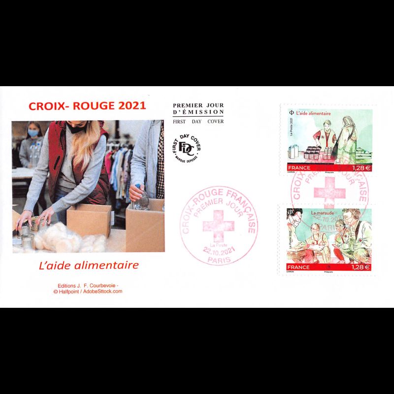 FDC JF - Croix rouge 2021 (2 env) - 22/10/2021 Paris - Enveloppe premier jour de France. Edition Jean Farcigny