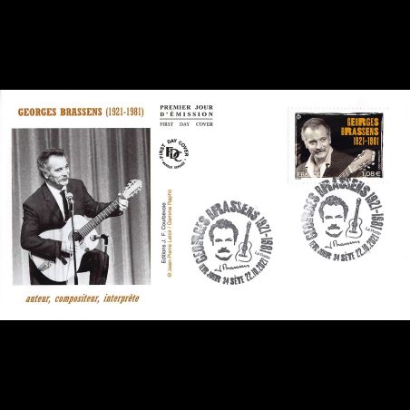 FDC JF - Georges Brassens (1921 - 1981) - 22/10/2021 Sète - Enveloppe premier jour de France. Edition Jean Farcigny