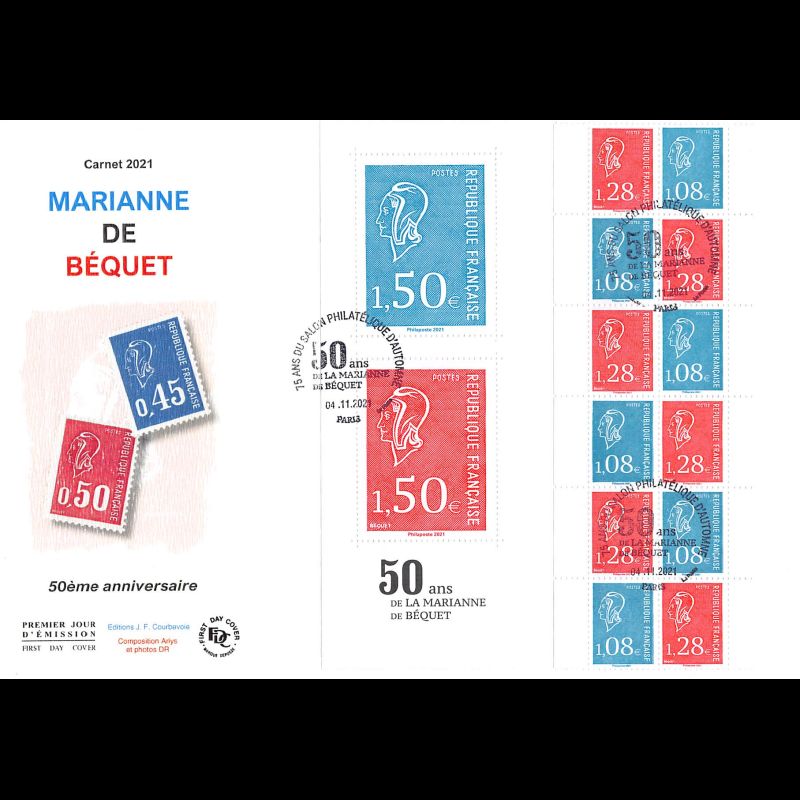 FDC GF JF - Carnet 50 ans Marianne de Béquet - 4/11/2021 Paris - First Day Cover - Enveloppe premier jour Grand Format de France.