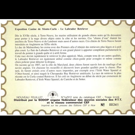 Feuillet CEF n° 1s/312 - Exposition canine de Monte-Carlo