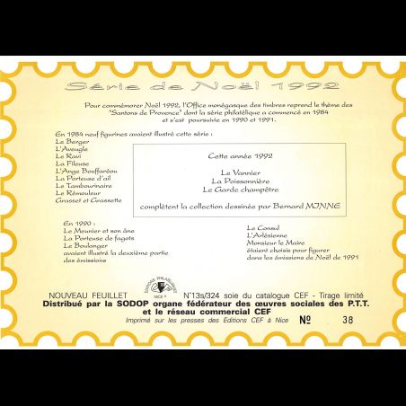 Feuillet CEF n° 30s/341 - Série Noël - Santons de Provence